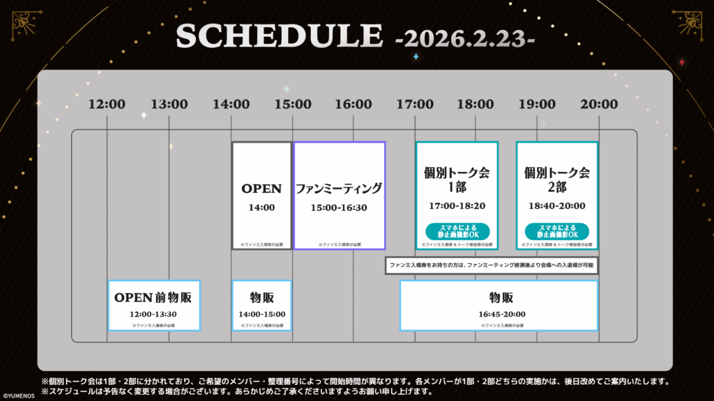 2026年2月23日に、YUMENOS 第二回のファンミーティングを開催いたします!